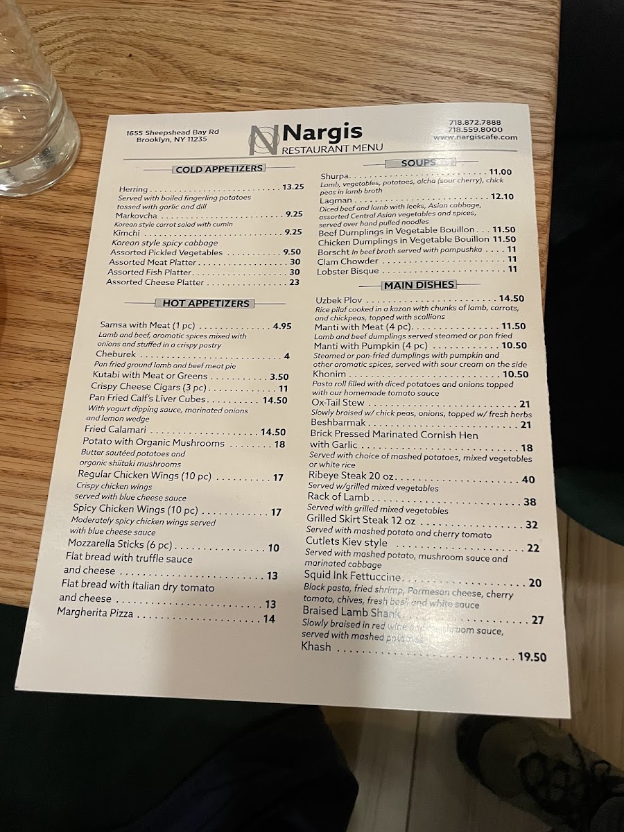 When you step into Nargis Cafe, you're in for a delightful treat that brings together comforting flavors and a cozy atmosphere. Located at 1655 Sheepshead Bay Rd in Brooklyn, NY, this place is a hidden gem perfect for a casual meal or a laid-back evening with friends. The Nargis Cafe Menu offers a variety of dishes that cater to all tastes, from savory appetizers to rich, satisfying main courses. Whether you're craving a fresh salad, grilled meats, or a flavorful vegetarian option, the menu has something to please everyone. Plus, the cafe’s unique blend of spices and homemade recipes ensures that every bite is packed with flavor. Don’t forget to check out their drink options, which pair perfectly with any meal. With each dish thoughtfully prepared and full of heart, Nargis Cafe is sure to become a go-to spot for both locals and visitors alike.